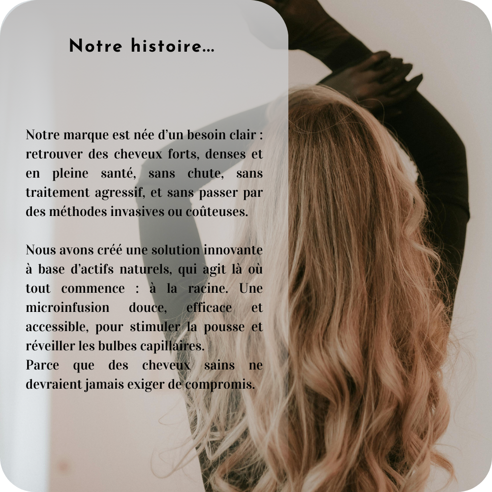 Nous sommes une marque pionnière de la micro-infusion, dédiée à la beauté et à la santé de vos cheveux et de votre peau. En alliant innovation technologique et ingrédients naturels, nous proposons des soins puissants, précis et accessibles, qui agissent en profondeur là où votre corps en a le plus besoin.