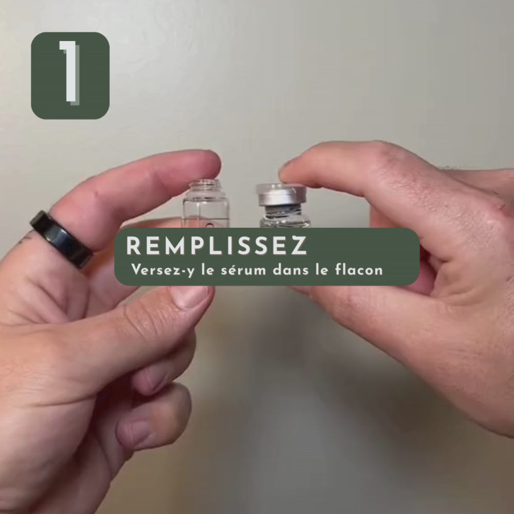 Ouvrez le flacon et remplissez-le de sérum. Refermez sans forcer pour garantir une application optimale